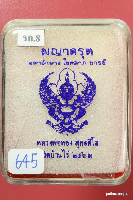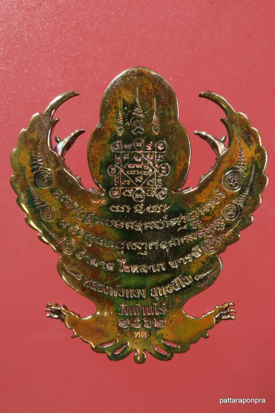 พญาครุฆ หลวงพ่อทอง รุ่นมหาอำนาจ โชคลาภ บารมี ปี 2562 เนื้อทองแดงมันปู หมายเลข 645