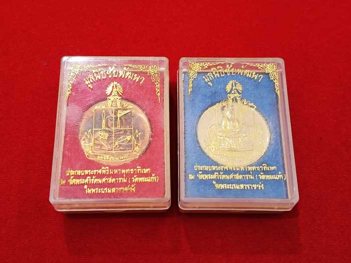วัดใจ 100 เดียวแดง ++ เหรียญพระพุทธนิโรคันตรายชัยวัฒน์จตุรทิศ วัดมงคลชัยพัฒนา ปี2539 (2 เหรียญ) กล่องเดิม |