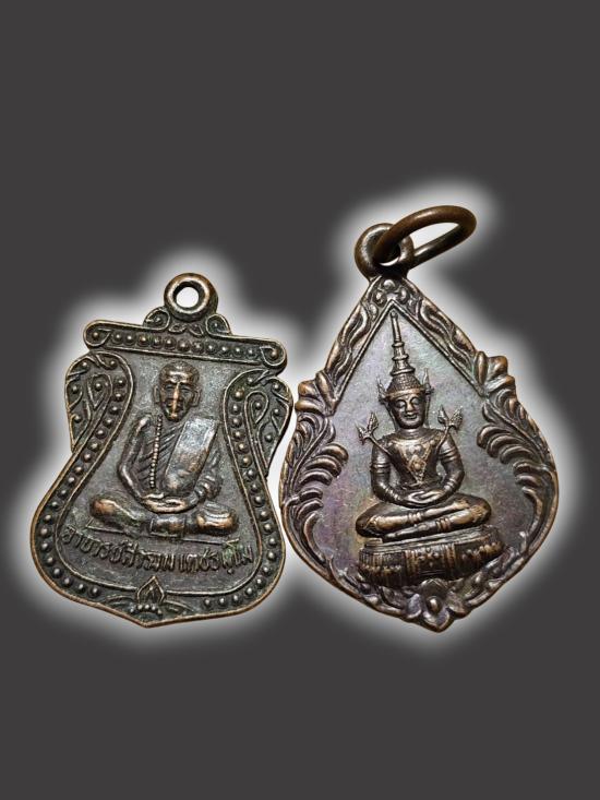 A5216.แบ่งปันยกคู่ 2 เหรียญ!! เหรียญรุ่นเเรก หลวงพ่อสำรวม วัดเขาเข้ + พระแก้วมรกต หลังพระนาคปรก วัดถ้ำแฝด เคาะเดียวเเดง
