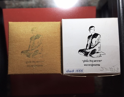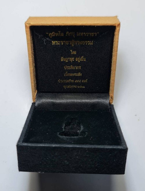 พระกริ่ง "ภูมิพโล ภิกขุ มหาราชา " พระราชาผู้ทรงธรรม ผลงานอาจารย์อัษฎายุธ อยู่เย็น เนื้อทองระฆัง หมายเลข 717 กล่องเดิมครับ |
