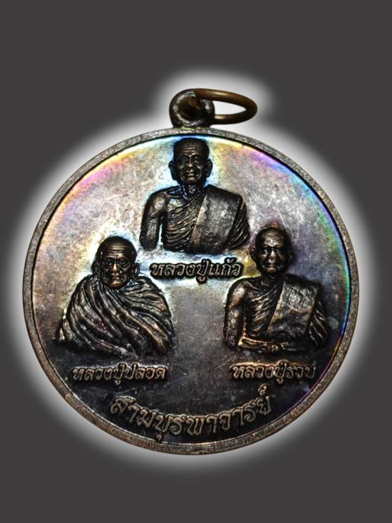 A5233.เหรียญกลมใหญ่ สามบูรพาจารย์ วัดในปากทะเล เพชรบุรี ปี2556 สวยๆ เคาะเดียวเเดง