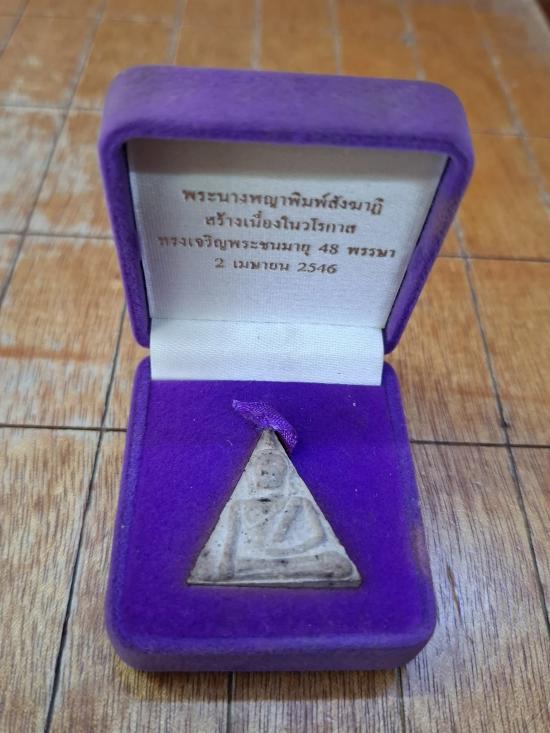 พระนางพญา ส ธ. สมเด็จพระเทพ ฯ พิมพ์สังฆาฏิตะกรุดเงิน สร้างเน ื่องเจริญพระชนมายุ 48 พรรษา ปีพ. ศ. 2546 กล่องเดิม