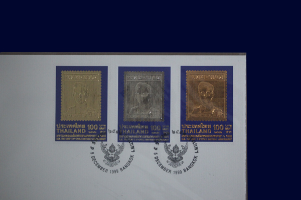 แสตมป์สามกษัตริย์ชุด ทอง เงิน นาค ที่ระลึกในหลวงครบ 6 รอบ |