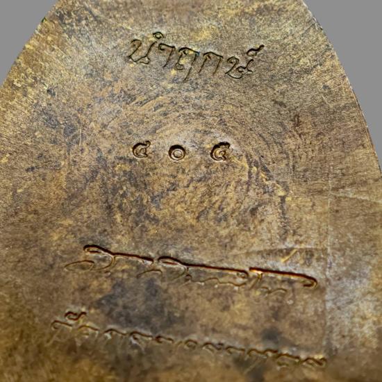 ปั๊มรูปเหมือนเตารีดหลังเรียบ หลวงพ่อสนั่น รุ่นแรก ปี2553 เนื้อทองผสมนำฤกษ์ หลังตอกโค้ดลายเซ็นต์ หมายเลข 405