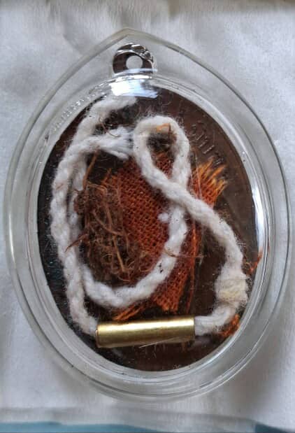 เหรียญ...รุ่นแรก ญาท่านสวน บลอคตาเป็ก มีจารย์ด้านหน้า หลังมีตะกรุด ชานหมาก และ สบง....สภาพสวยเดิม ๆ