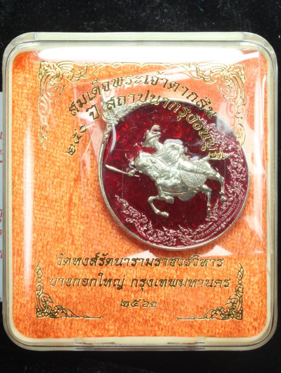 เคาะเดียว พิมพ์เล็ก กะไหล่เงินลงยาแดง เหรียญสมเด็จพระเจ้าตากสินมหาราช 250 ปีสถาปนากรุงธนบุรี วัดหงส์รัตนารามราชวรวิหาร ปี 2561 ตรวจ/แก้ไขแบบ โดย อาจารย์เฉลิมชัย โฆษิตพิพัฒน์ เหรียญสวยน่าเก็บ//No กะไหล่เงินลงยาจิวลี่ |