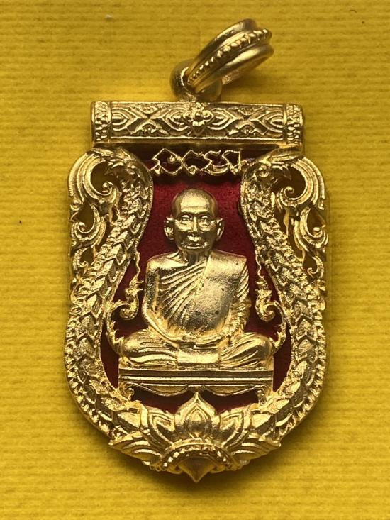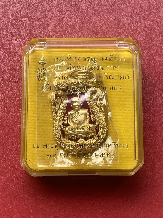 เคาะเดียวแดง พระสังฆราช รุ่น ทรงประทานพร เลข693 เนื้อ ชุบทองลงยาแดง |
