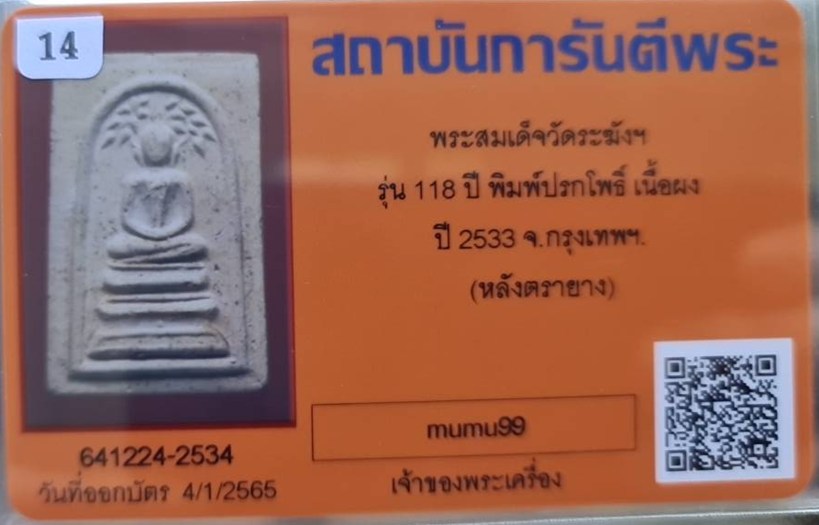 ## สมเด็จวัดระฆัง อนุสรณ์ 118ปี พ.ศ.2533 พิมพ์ปรกโพธิ์ "พระสวยเดิมไม่ผ่านการใช้.หลังปั้มตรายาง...พร้อมบัตรรับรอง.""รับประกันแท้ตลอดฃีพและแท้ตามมาตรฐานสากล....... อนาคตดี ถูกๆเลยครับ.... ราคายังไม่แรง. |
