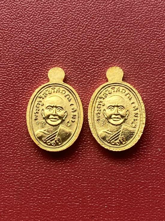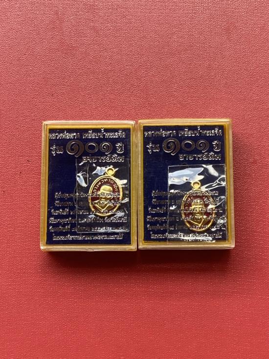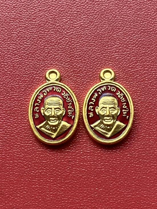 เคาะเดียวแดง เม็ดแตง 2องค์หลวงปู่ทวด รุ่น101ปี เนื้อ ชุบทองลงยาแดง