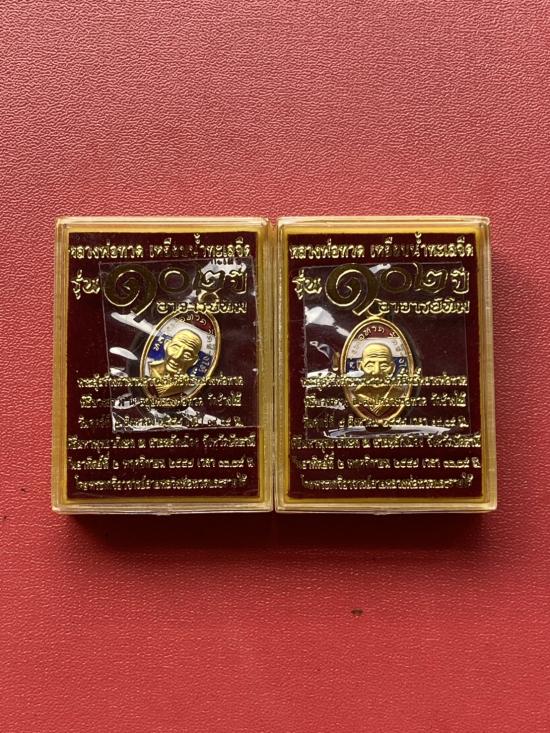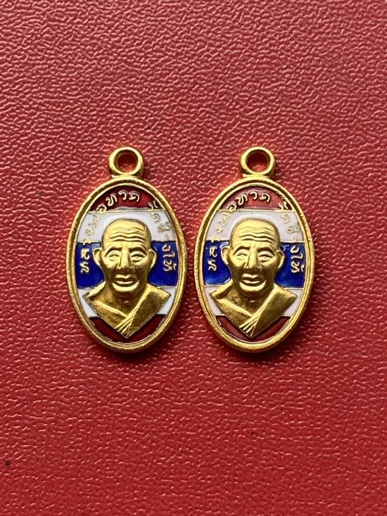 เคาะเดียวแดง เม็ดแตง 2องค์หลวงปู่ทวด รุ่น102ปี เนื้อ ชุบทองลงยาธงชาติ