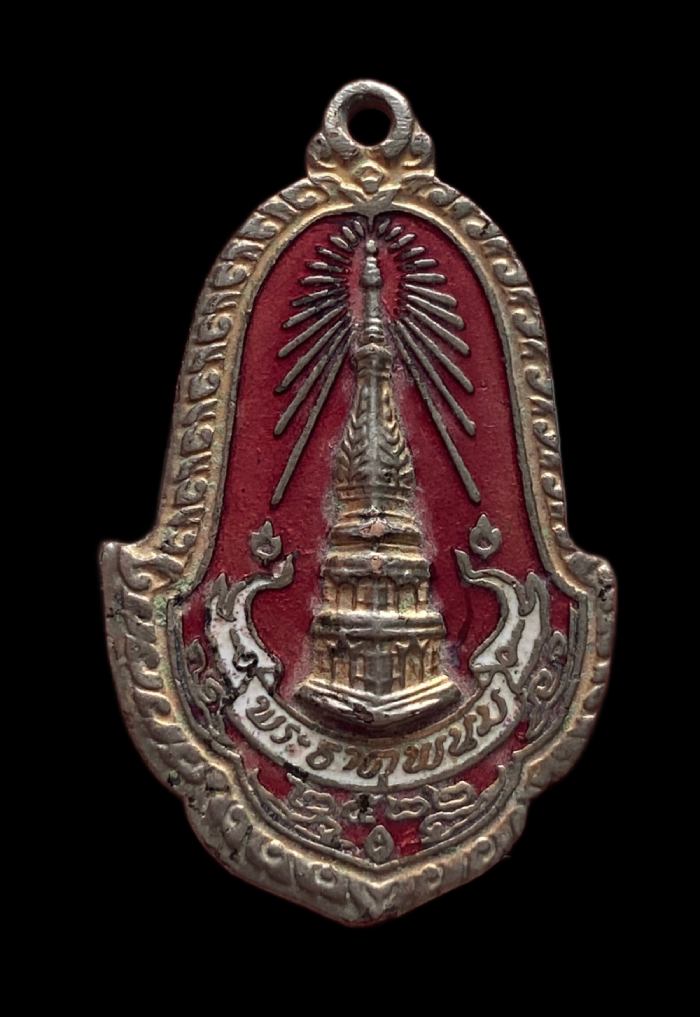 เหรียญพระธาตุพนม วัดพระธาตุพนมวรมหาวิหาร จ.นครพนม กะไหล่ทอง ลงยาสีแดง ปี2522