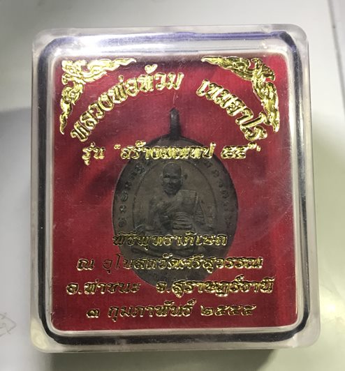 ***เคาะเดียว***เหรียญหล่อโบราณ รุ่นแรก หลวงพ่อท้วม วัดศรีสุวรรณ จ.สุราษฎร์ธานี รุ่นสร้างมณฑป เนื้อนวโลหะ ตอกโค๊ด # 846 ปี 2555