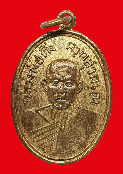 เหรียญหลวงพ่อดิ่ง วัดบางวัว รุ่น3 พิมพ์ติ่ง เนื้อทองแดงกะไหล่ทอง ห่วงเดิม ปี2498 จ.ฉะเชิงเทรา + บัตรG-pra สภาพเดิมค่ะ