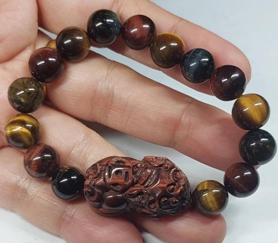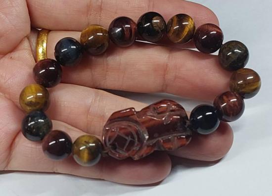 ***วัดใจ***สร้อยข้อมือปี่เซี๊ยะ หินไทเกอร์อาย 3 ทหารเสือ 10 มิล