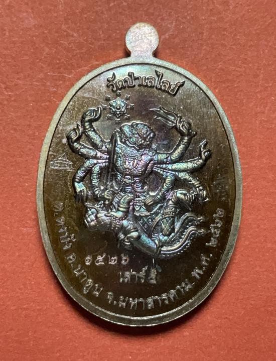 เหรียญมนต์พระกาฬ เสาร์๕ มหาสมปรารถนา หลวงปู่ลุน วัดป่าเลไลย์ อำเภอนาดูน จังหวัดมหาสารคาม เนื้อทองแดงมันปู ปี๒๕๖๒