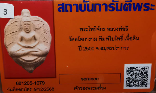 พระโพธิจักร หลวงพ่อลี วัดอโศการาม พิมพ์ใบโพธิ์ เนื้อดิน(มีหน้าตา) ปี2500 จ.สมุทรปราการ + บัตรG-pra สภาพสวยเดิมค่ะ |