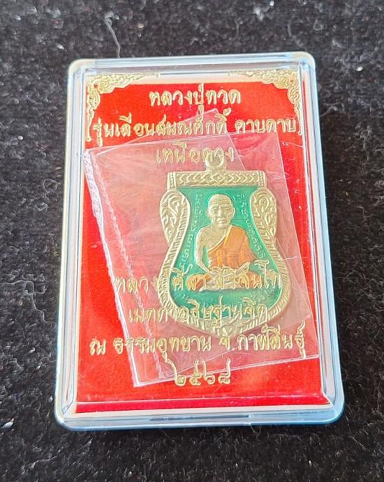 วัดใจ หลวงปู่ทวด หลวงปู่ศิลา เมตตาอธิษฐานจิต รุ่นเลื่อนสมณศักดิ์ เหนือดวง เนื้อทองทิพย์ ลงยา No.90 |