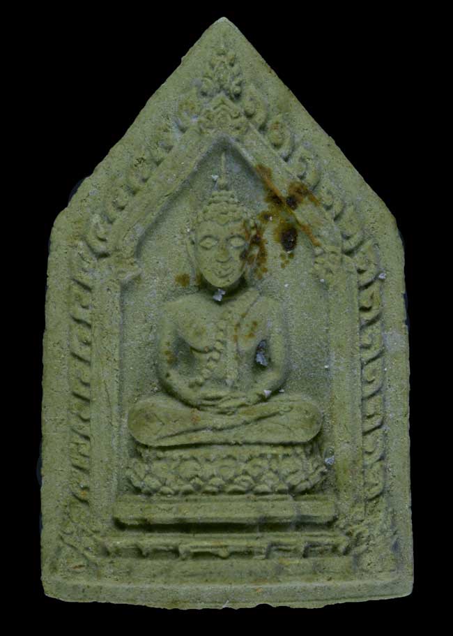 พระพุทธสิหิง เนื้อเขียวพิมพ์เล็ก โรยผงตะไบทอง เกษา สภาพสวย