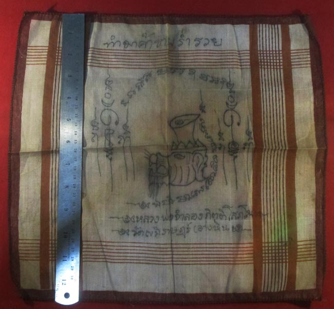 ผ้ายันต์ หลวงพ่อจำลอง กิตติโสภโณ วัดเขมิราษฏร์ จารยันต์ด้วยมือ ครับ (พระบ้าน ครับ)