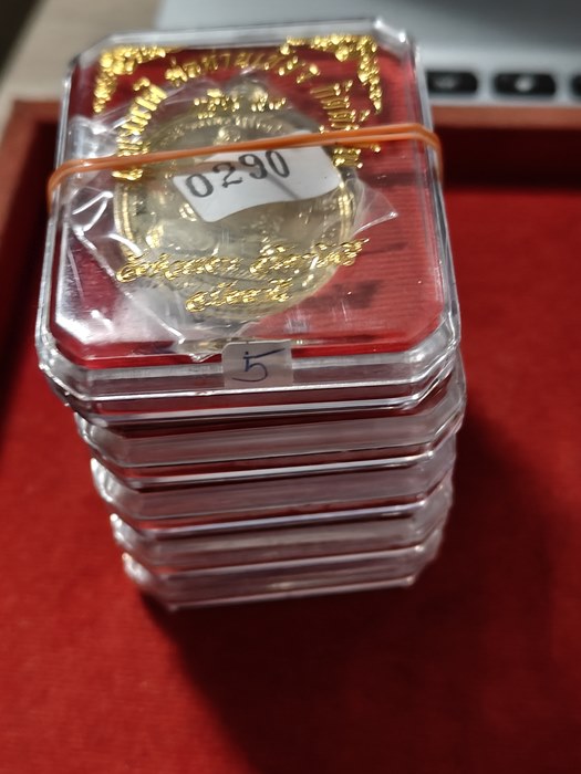 รายละเอียด วัดใจ #5 ชุด5เหรียญ 5พิมพ์(มีกล่อง)(จอง700) เนื้อทองฝาบาตร รุ่น กฐิน 58 พ่อท่านเขียว วัดห้วยเงาะ อำเภอโคกโพธิ์ จังหวัดปัตตานี