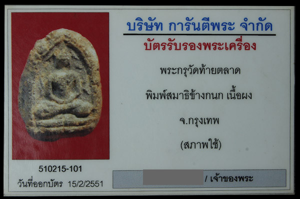 พระกรุวัดท้ายตลาด พิมพ์สมาธิข้างกนก เนื้อผง สภาพสมบูรณ์ พร้อมบัตร G-pra ครับ