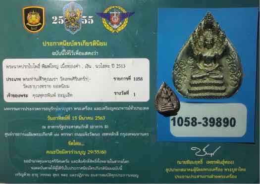 พร้อมใบประกาศที่1 งานสมาคม จำนวนสร้าง ทองคำ 150 องค์ เนื้อเงิน 150 องค์ เนื้อนวะ 2500 องค์ รับประกันตามกฎ
