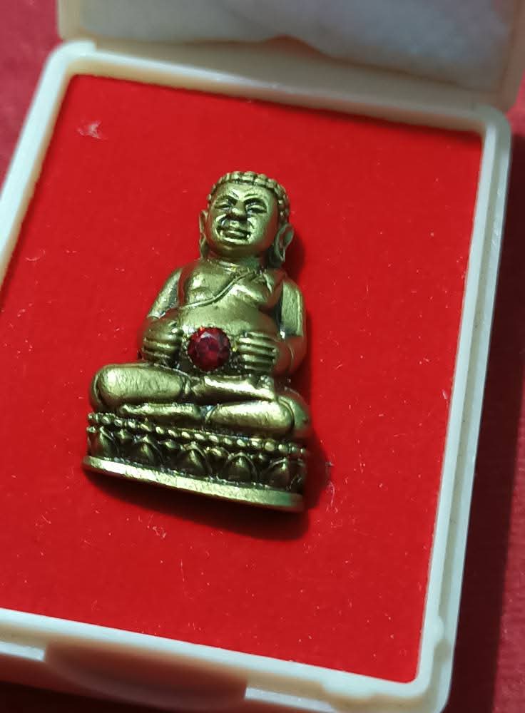 พระสังกัจจายน์ 7รอบรุ่นแรก ปี66 หลวงปู่บุญมา เนื้อทองทิพย์ซาติน ฝังพลอยแดง No.46