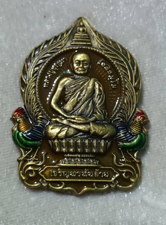 เหรียญนั่งพานเจริญพรพันล้าน ปี64 เนื้อทองทิพย์ลงยาเหลือง (แจกในพิธี) No.2696