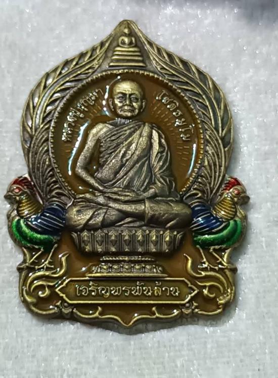เหรียญนั่งพานเจริญพรพันล้าน ปี64 เนื้อทองทิพย์ลงยาเหลือง (แจกในพิธี) No.2280