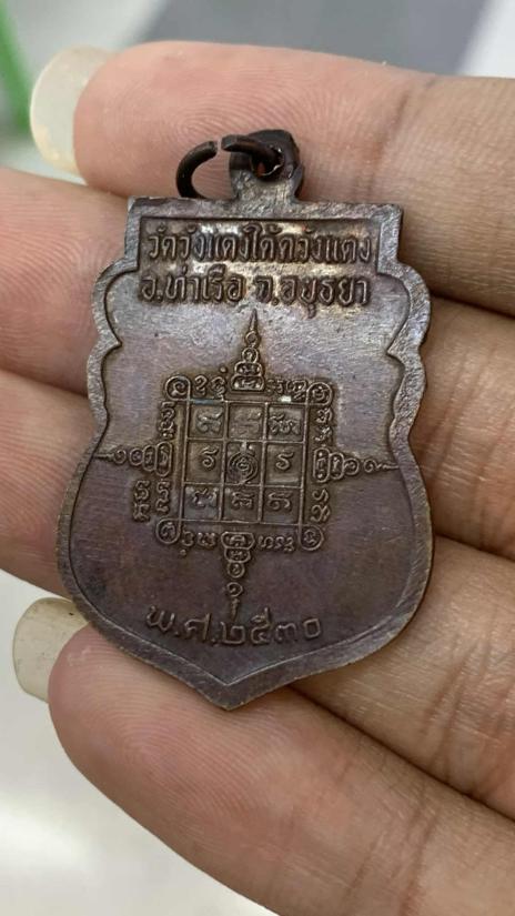 เหรียญเสมา หลวงพ่อเอื้อน วัดวังแดงใต้ รุ่นแรก พิมพ์ใหญ่ บล็อกแรก 1ชิดบน เนื้อทองแดง(2)
