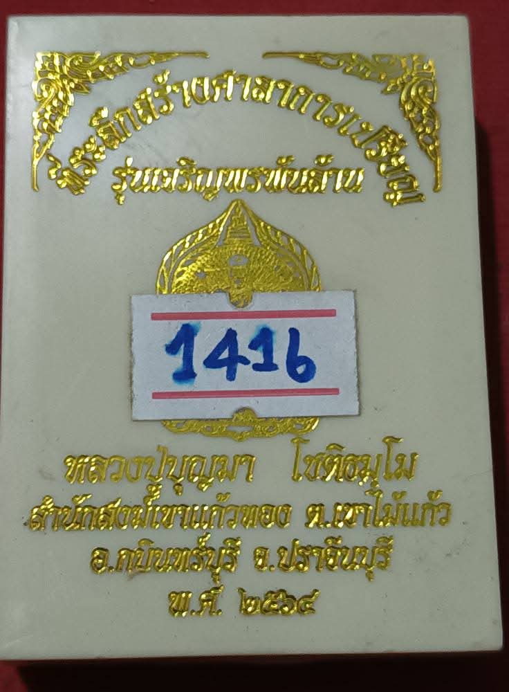 เหรียญนั่งพานเจริญพรพันล้าน ปี64 เนื้อทองทิพย์ลงยาแดง(แจกในพิธี) No.1416