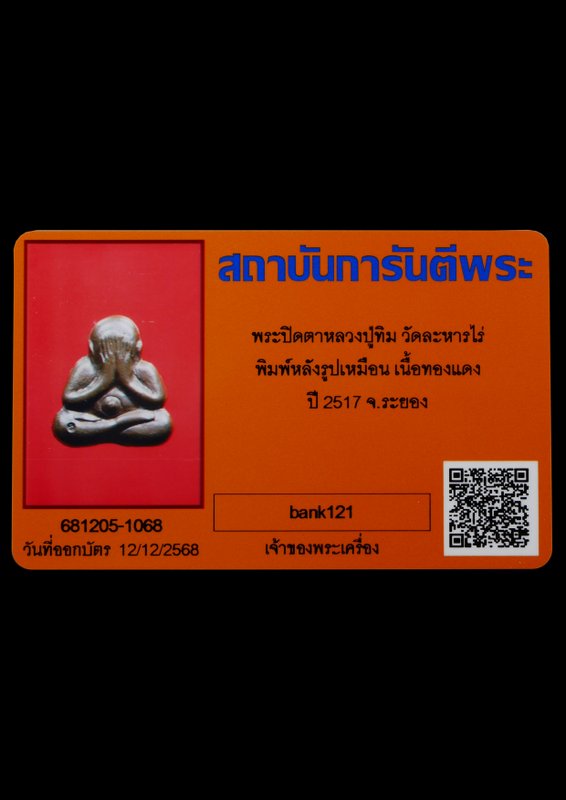 ชื่อพระเครื่อง ปิดตาหลังรูปเหมือน หลวงปู่ทิม เนื้อทองแดง สวยเดิม