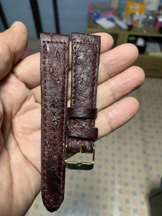 หนังนกกระจอกเทศแท้ แฮนด์เมจ บัคเคิลสีทอง 20มิล ใหม่มือ1 รับประกันตามกฎ |