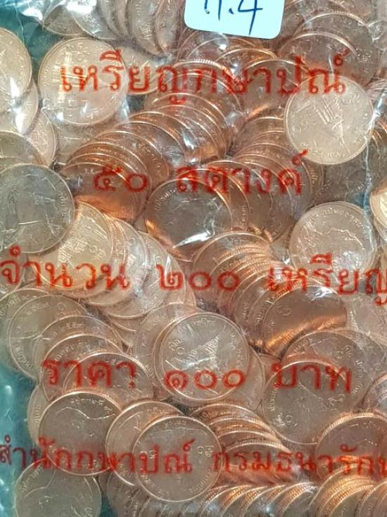 ::เหรียญใหม่ UNC รัชกาลที่9 ปี2559 ถุงซีลเดิม ราคาเหรียญ 50 สตางค์ X 200เหรียญ รวม 100 บาท:: แพ็คที่.ก.4