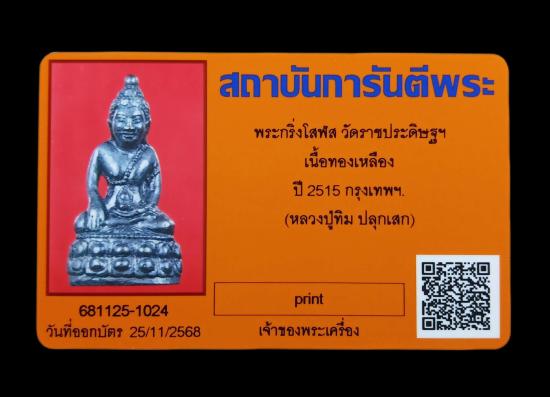 พระกริ่งโสฬส หลัง มปร. ปีพ.ศ.๒๕๑๕ เนื้อทองเหลืองรมดำ พร้อมบัตรรับรอง ครับ