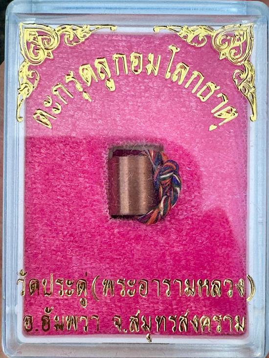 ตะกรุดลูกอมโลกธาตุ (((เนื้อทองแดง)) กล่องเดิม พระมหาสุรศักดิ์ วัดประดู่พระอารามหลวง สมุทรสงคราม ยุคเก่า แผ่นทองแดงแบบหนา |
