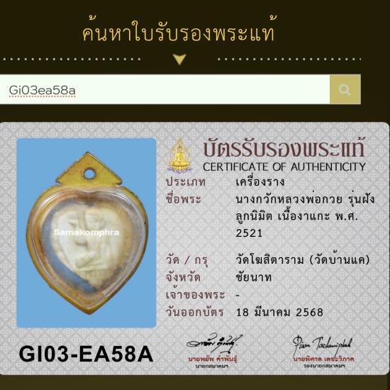 นางกวักเนื้องาแกะ หลวงพ่อกวย วัดโฆสิตาราม ปี 2521 เลี่ยมเดิมจากวัด พร้อมบัตรรับรองสมาคม