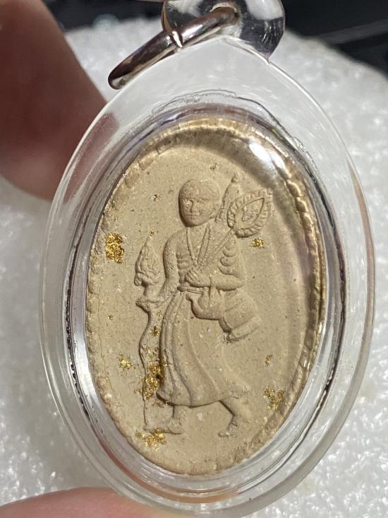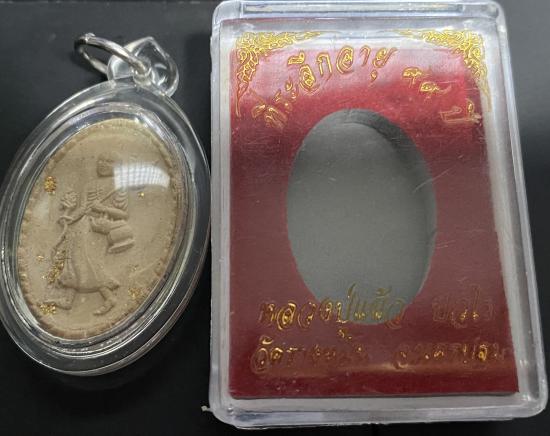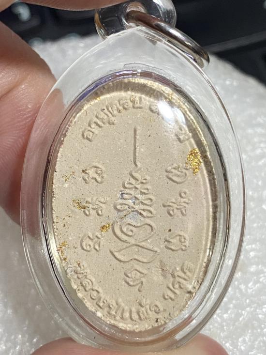 ด้านหลังฝังตระกรุดเงิน พร้อมเลี่ยมพาสติกพร้อมขึ้นคอ