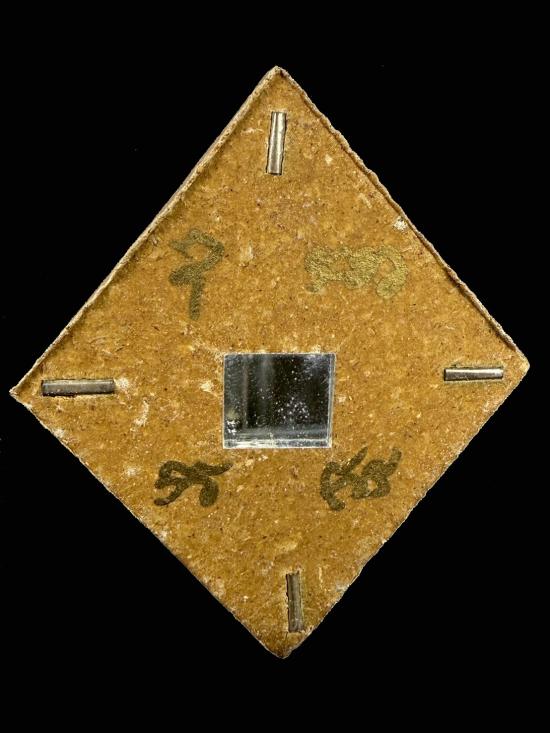 ด้านหลังองค์พระประดับด้วยแผ่นกระจก เป็นคันฉ่องโบราณใช้สะท้อนสิ่งไม่ดี ปราบสิ่งเลวร้าย ข่มคู่แข่ง แผ่นกระจกนี้ผ่านการเสกจากยอดเกจิอาจารย์มามากต่อมาก กันดวงตก แก้ดวงไม่ดี แก้ดวงชงก็ได้