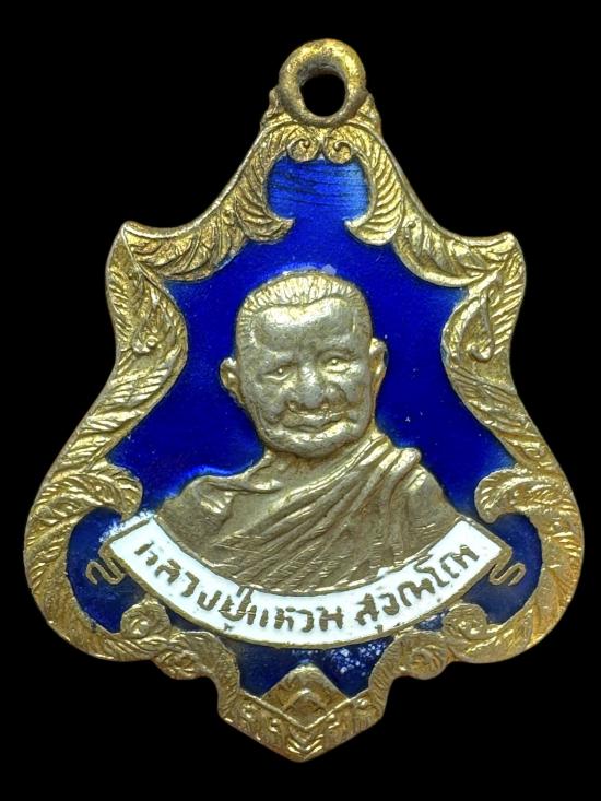 เหรียญหลวงปู่แหวน วัดดอยแม่ปั๋ง จ.เชียงใหม่ รุ่นทหารเรือ เนื้อกะไหล่ทองลงยาน้ำเงิน ปี20 สวยผิวเดิมๆ