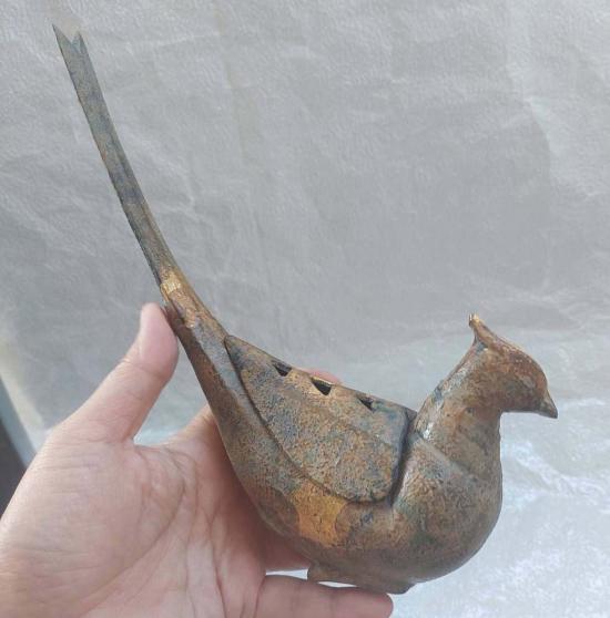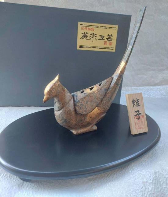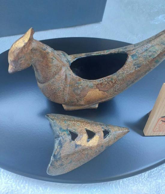 กระถางกำยาน รูปไก่ฟ้า ยี่ห้อ Takaoka Copperware ของเก่าเก็บยังไม่ใช้ งานฝีมือโบราณ วินเทจ กล่องเดิม เนื้อโลหะทองสำริด พร้อมฐานวาง
