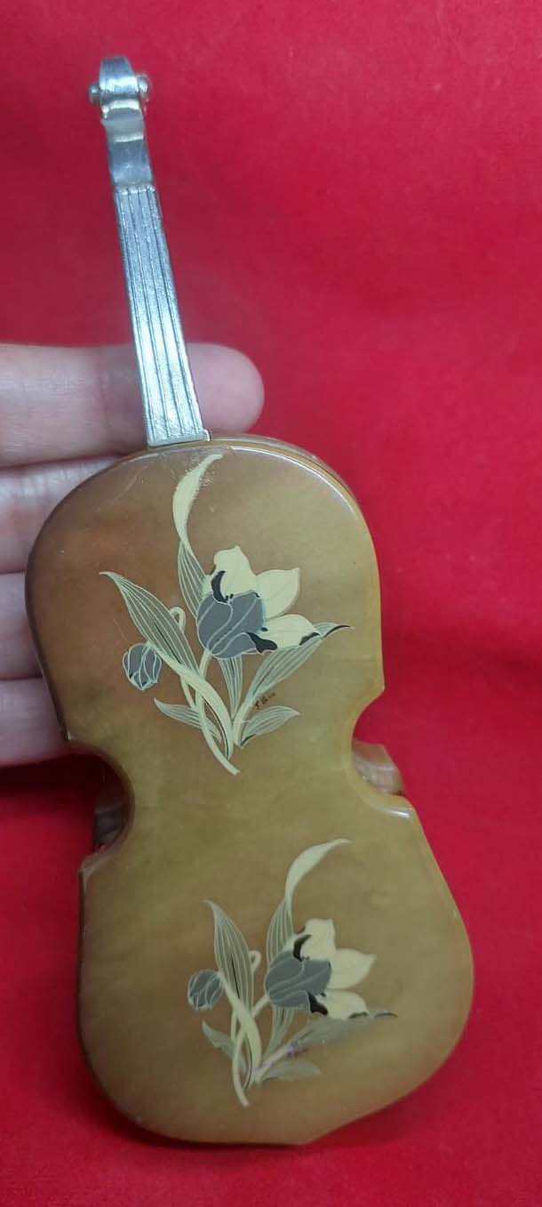 กล่องใส่เครื่องประดับหินอะลาบาสเตอร์รูปทรงไวโอลินและเชลโลแบบวินเทจ กล่องหินอะลาบาสเตอร์แบบบานพับขนาด 4 นิ้ว ผลิตในอิตาลี