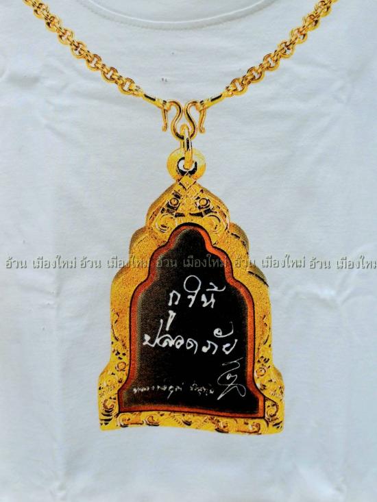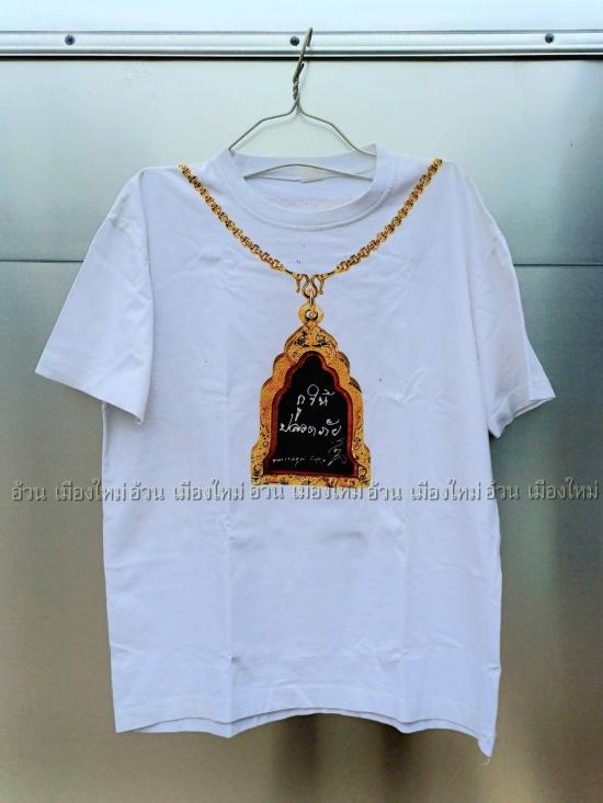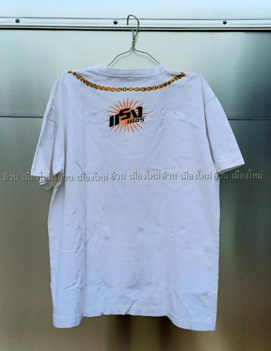 เสื้อยืดแรงเยอร์ ( แบบสกรีนลายสร้อยทอง กูให้ปลอดภัย ) ปลุกเสกโดย หลวงพ่อคูณ ( อก 42 นิ้ว , ยาว 25.5 นิ้ว , สภาพมือสอง , มีตำหนิตามด )