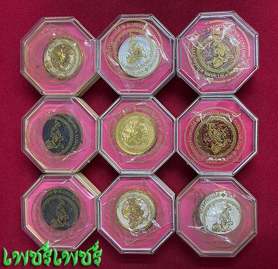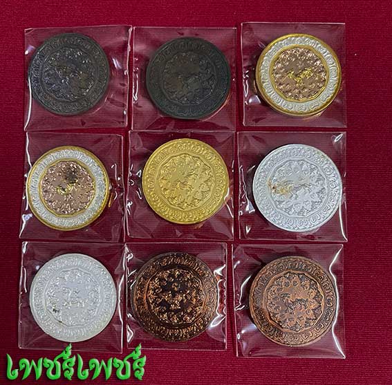 เหรียญ จตุคามรามเทพ รุ่นทรัพย์สมุทรจ้าวทะเลใต้ วัดปลายบางนาวขนาด3.2เซ็นต์ เนื้อนวะ+3k+กะไหลาเงิน+ทองแดงรวม9เหรียญ ปี2550 สภาพสวยไม่ผ่านการใช้ พร้อมกล่องเดิม ค่ะ