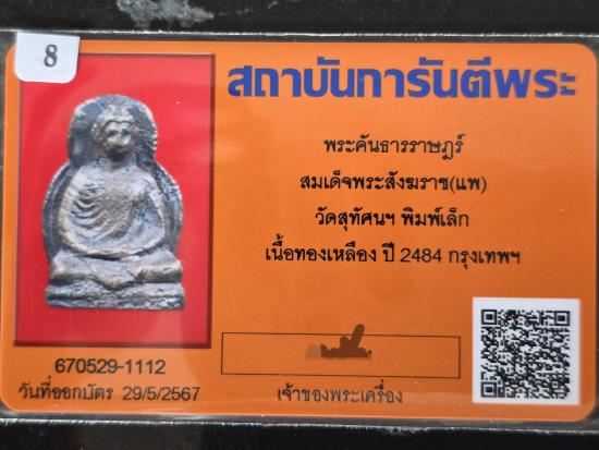 เหรียญหล่อคันธาราษฎร์ สังฆราชแพ วัดสุทัศน์ ปี2484 สวยเดิมครับ พร้อมบัตรรับรอง