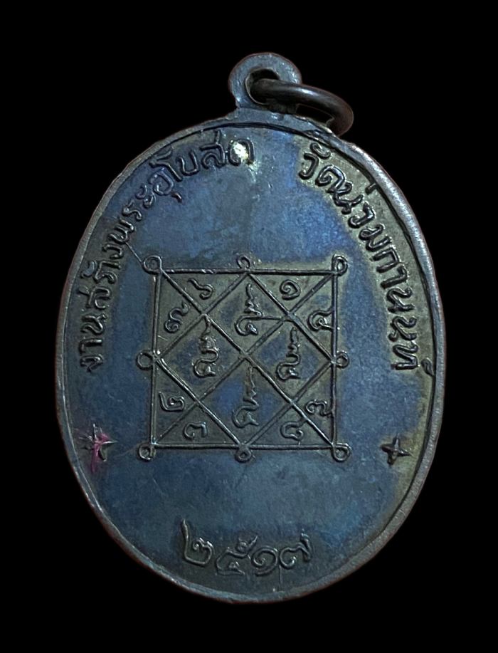เหรียญรุ่นแรก หลวงพ่อโต วัดน่วมกานนท์ มหาชัย จ.สมุทรสาคร พิมพ์เต็มองค์ เนื้อทองแดง หลังยันต์ สวยมาก ปี 2517