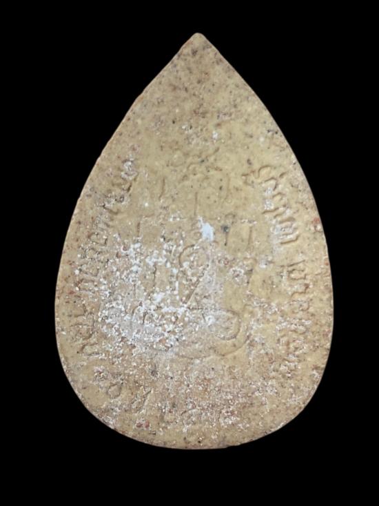 ด้านหลังมียันต์และอักขระกำกับตามแบบมีคราบตามอายุ