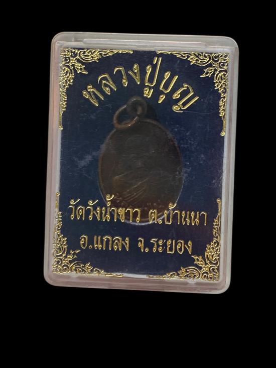 เหรียญหลวงปู่บุญ วัดวังน้ำขาว ต.บ้านนา อ.แกลง จ.ระยอง ลักษณะเหรียญทรงรี เนื้อโลหะ สภาพผ่านการใช้งาน ผิวมีคราบและรอยตามอายุ หูเหรียญเดิม ด้านหลังมียันต์และอักขระกำกับตามแบบ มีกล่องเดิมตามภาพ