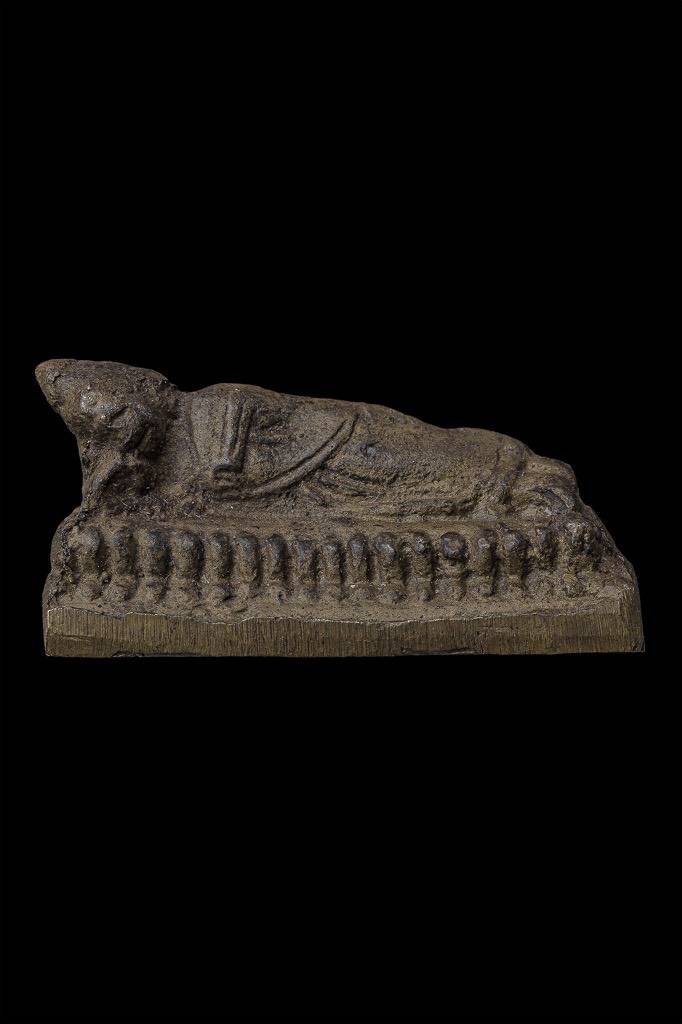 พระหล่อโบราณประจำวันเกิด ปางไสยาสน์ ( พระนอนประจำวันอังคาร ) หลวงปู่ใจ วัดเสด็จ สุดยอดเกจิแห่งสมุทรสงคราม เนื้อโลหะผสม พิมพ์นิยม