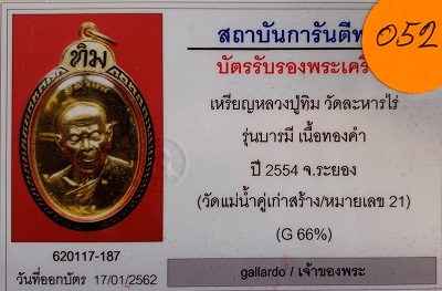 1 ใน 29 เหรียญหลวงปู่ทิม วัดละหารไร่ (เนื้อทองคำ)